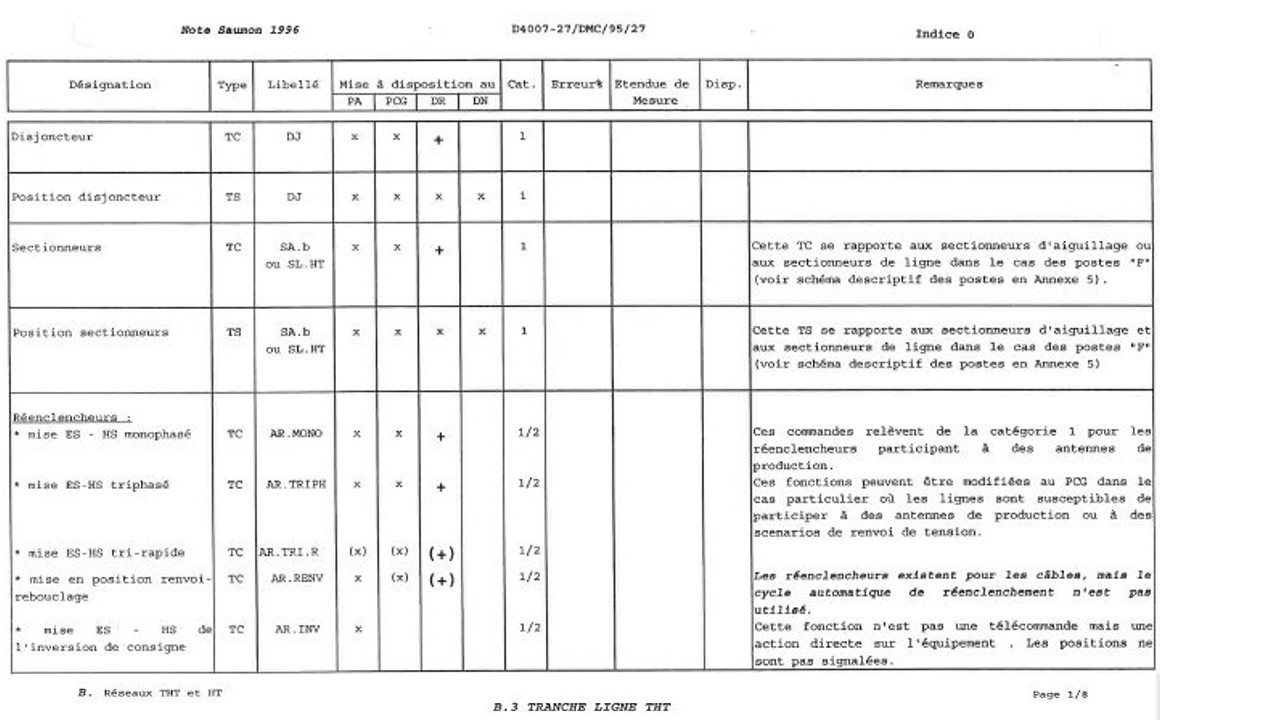 - Mise à disposition indique si la téléinformation concernée doit être acheminée vers (ou depuis) le PA, le PCG, le dispatching régional, le dispatching national. Cette classification a été effectuée en prenant en compte